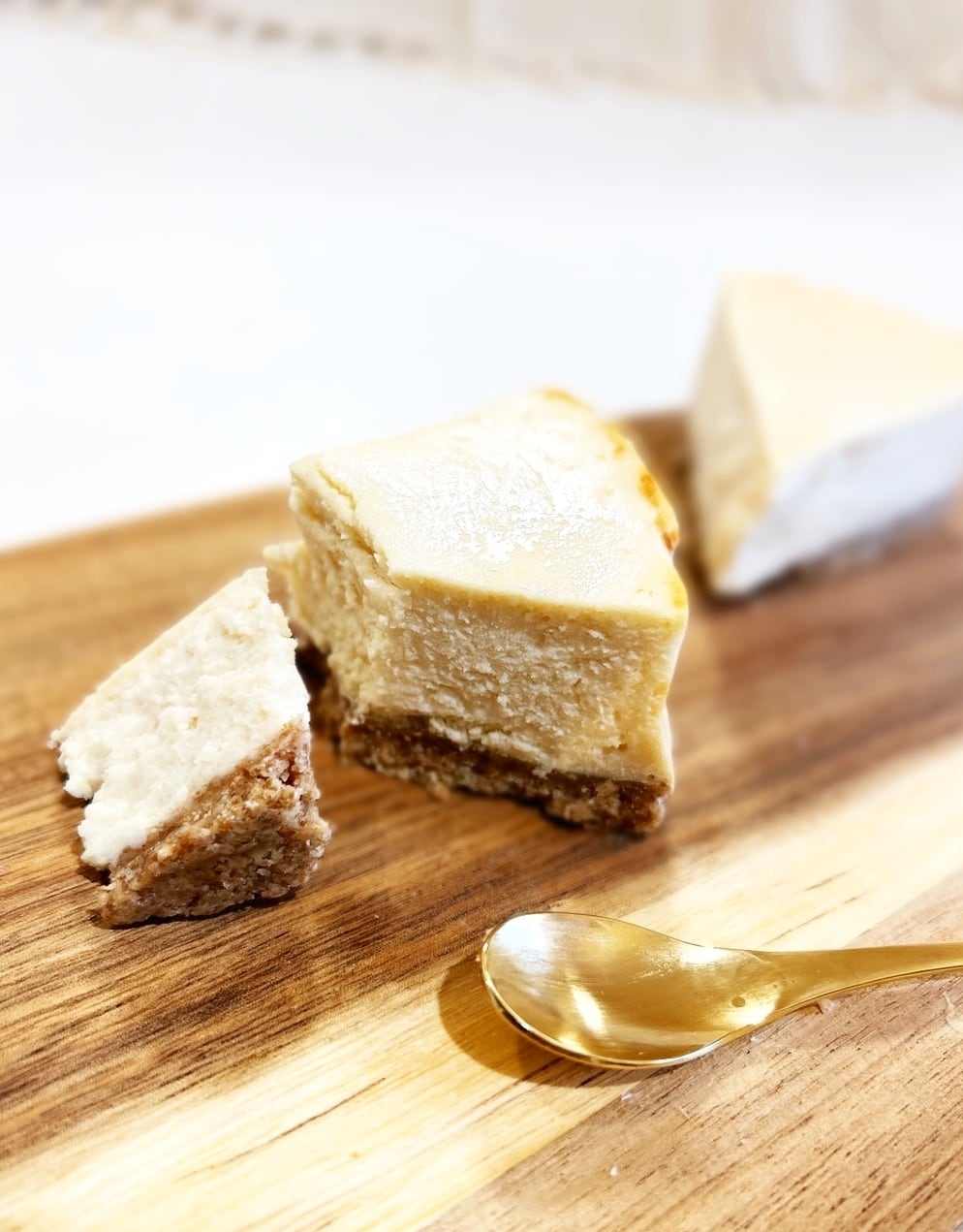 有機豆乳、有機レモン汁、サワークリーム配合で、甘さ控えめすっきり爽やかなチーズケーキをお楽しみください。